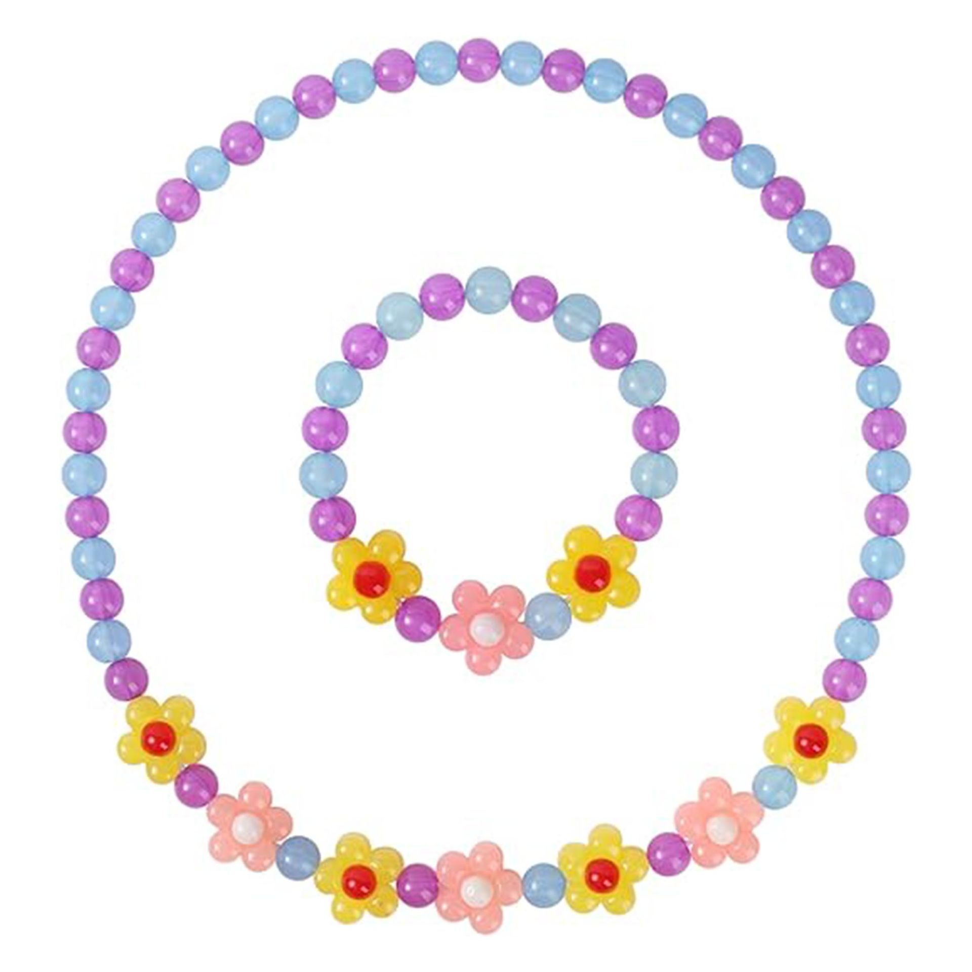 Amazon New Flower Children's Bracelet Necklace Acrylic Color Cute Flower Children's Necklace Birthday Gift