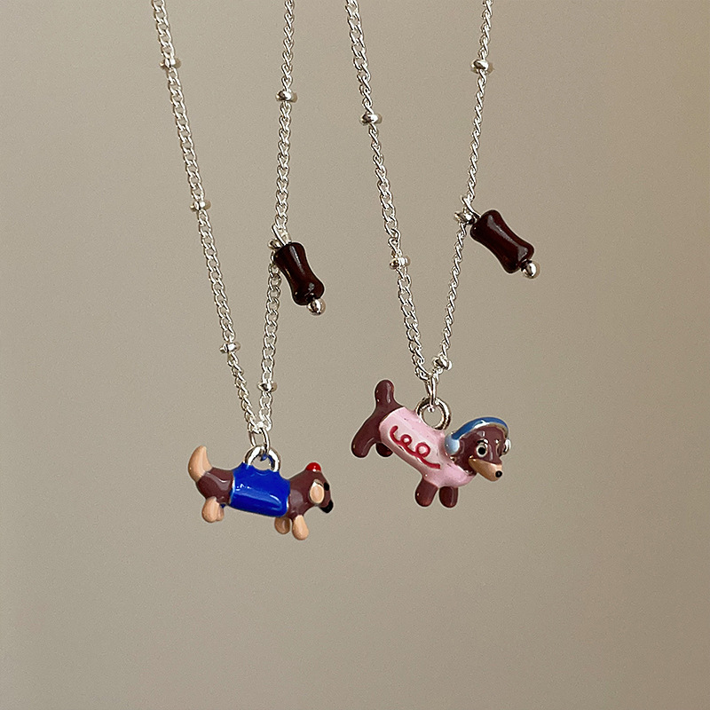 Children's Fun Color Oil Dropping Dachshund Pendant Necklace Female Niche Design Unique Distinctive Delicate Necklace Chain