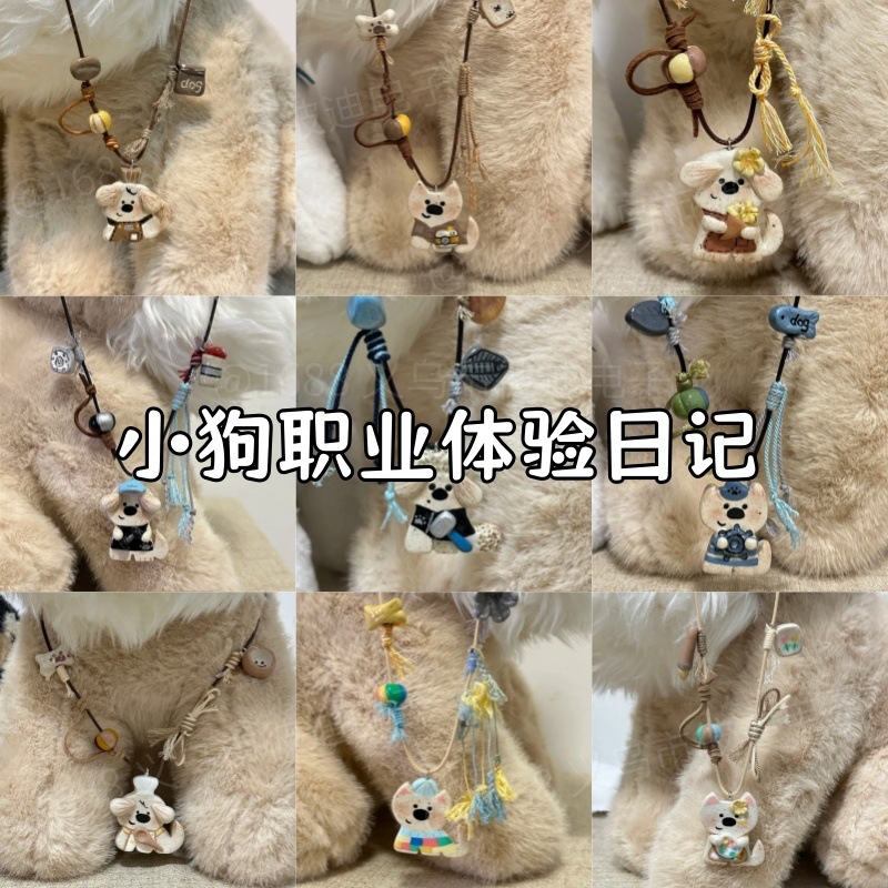Cartoon Ceramic Puppy Beaded Pendant Necklace for Women Dopamine Colorful Long Adjustable Sweatshirt Chain Versatile Accessory