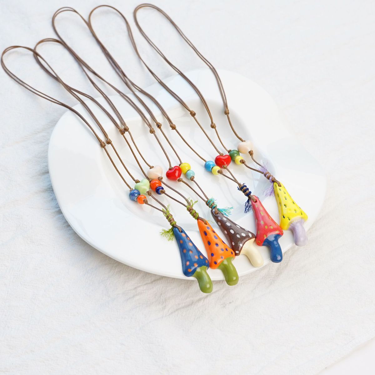 Jingdezhen Dopamine Colorful Autumn and Winter Necklace Accessories Women's Ceramic Mushroom Long Braided Sweater Sweater Chain Cross-Border