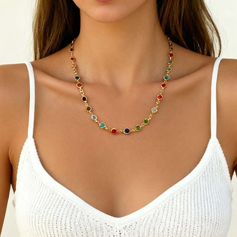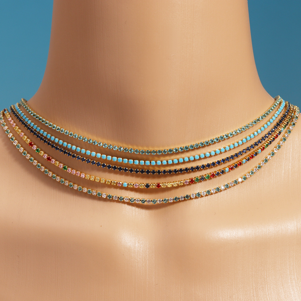 New Foreign Trade Personality Simple 2.0 Colorful Zircon Bracelet Single Row Claw Setting Fashion Versatile Collarbone Necklace for Women