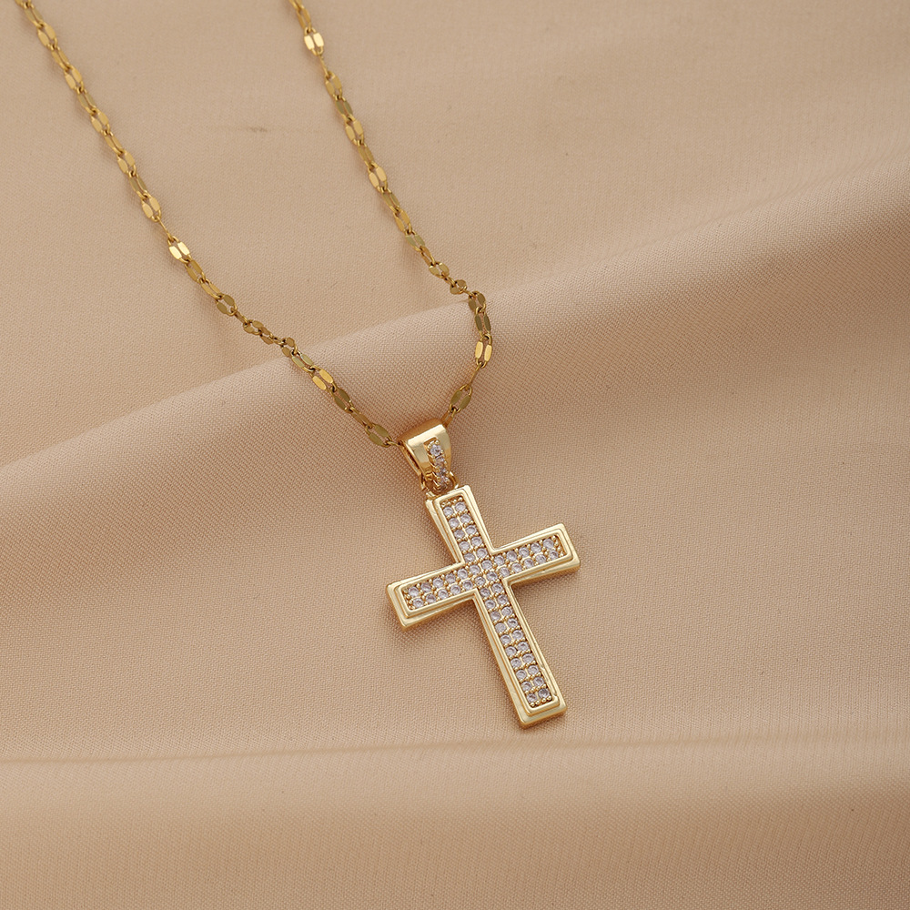Cross-border jewelry SHEIN TEMU hot cross simple fashion stainless steel necklace female inlay colored zircon