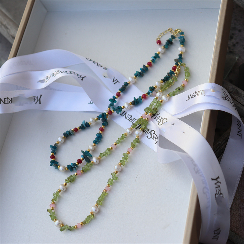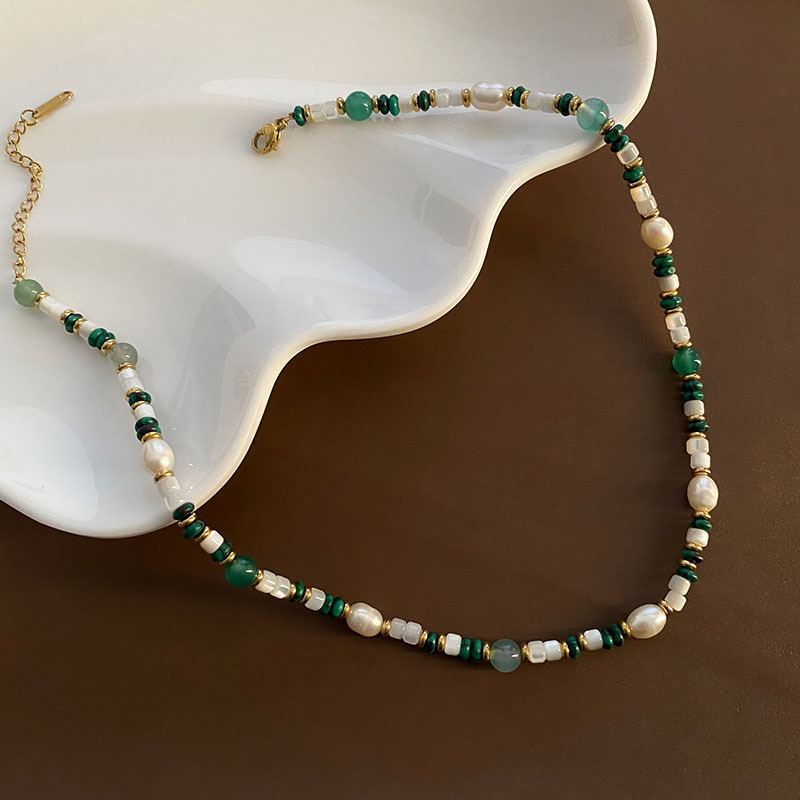 Colorful Beaded Clavicle Chain Natural Stone Freshwater Pearl Necklace Green 2024 New Entry Luxury Niche Women's Necklace