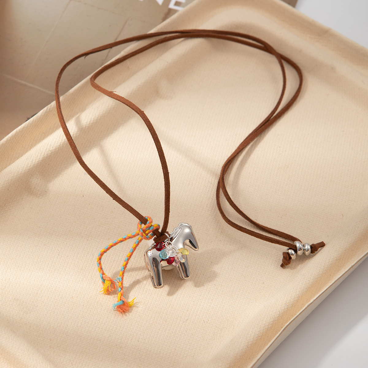 Bohemian Style Long Halter Necklace Silver Pony Colorful Zircon Pendant Adjustable Pull-Out Accessories for Women