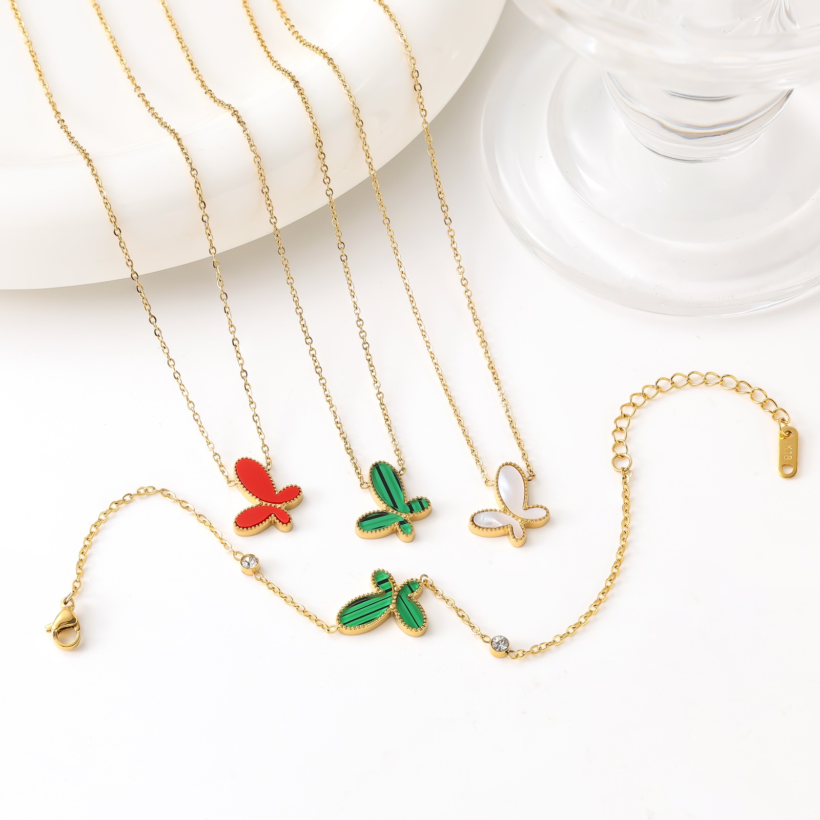 New style non-fading design sense colorful oil dripping butterfly necklace women's titanium steel fashion all-match temperament light luxury high-end feeling