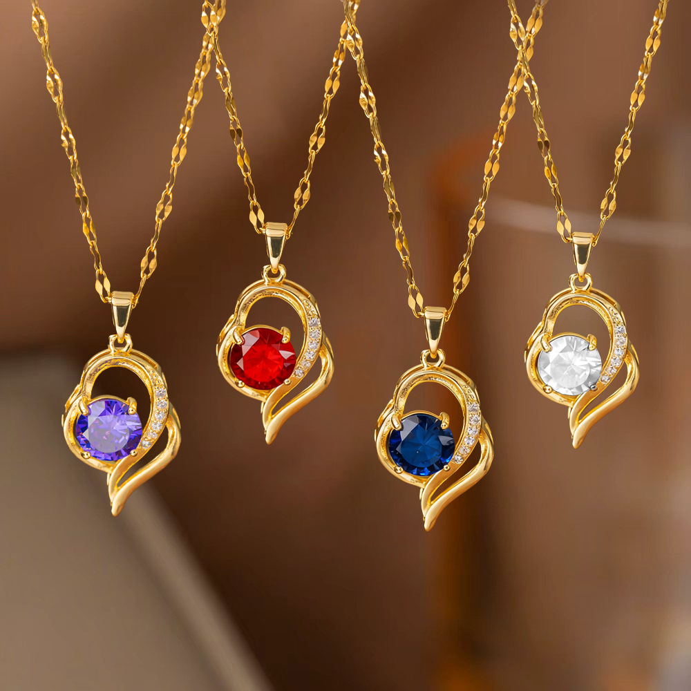 【All-Titanium Steel】Amazon's Cross-Border Bestseller, Stylish Colorful Zircon Necklace, Niche Fashion, Simple and High-End Feel