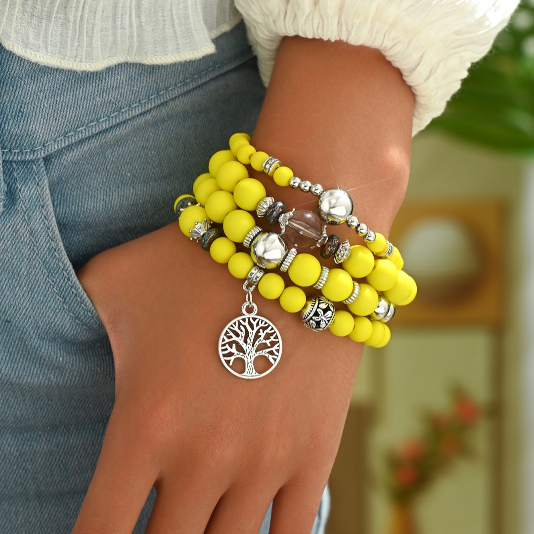 WISH new bracelet set alloy turquoise beaded tassel four-piece bracelet style manufacturers spot supply