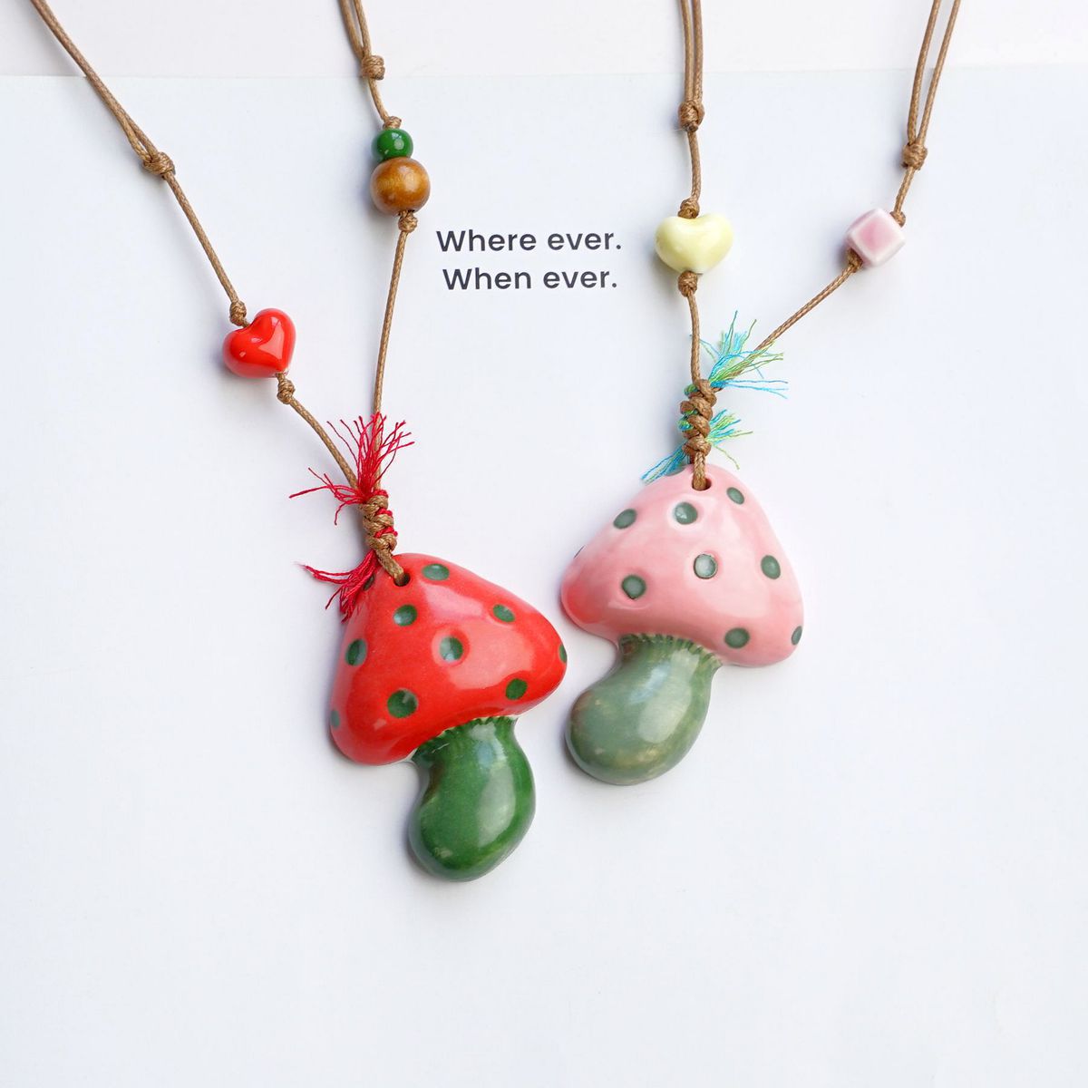 Jingdezhen Dopamine Colorful Autumn and Winter Necklace Accessories Women's Ceramic Mushroom Long Braided Sweater Sweater Chain Cross-Border