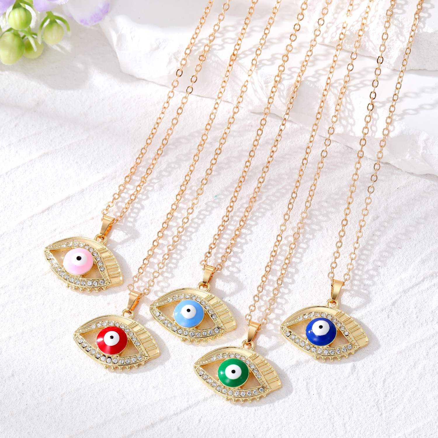 European cross-border jewelry color drop oil plating alloy Devil's Eye necklace hollow diamond eye pendant