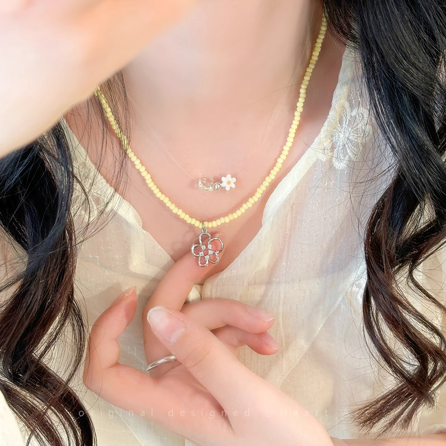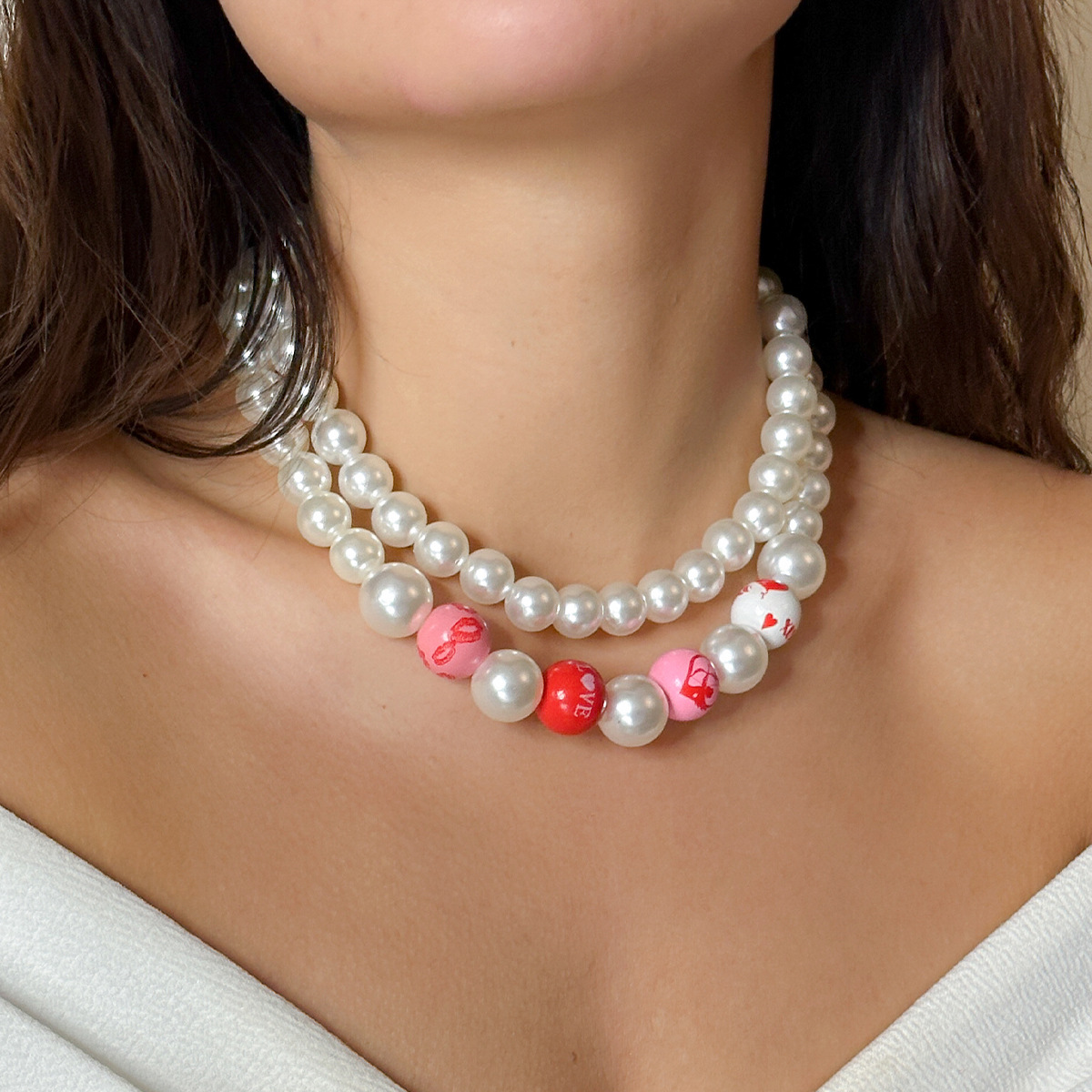 European and American cross-border Valentine's Day love letter element necklace personalized color beaded Imitation Pearl beer festival neck