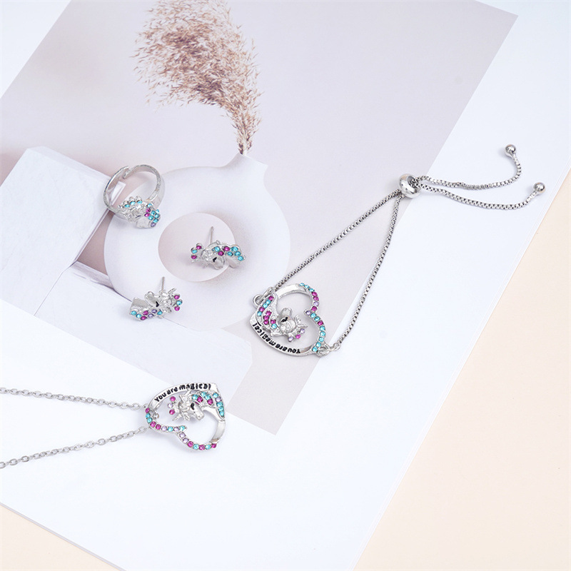 Cross-border European and American Crown Unicorn suit Jewelry Cute Pony Pendant Love Colorful Mixed Diamond Necklace Jewelry