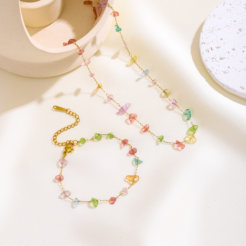 European and American new summer niche color natural stone beaded necklace women's fashion bracelet light luxury temperament jewelry wholesale