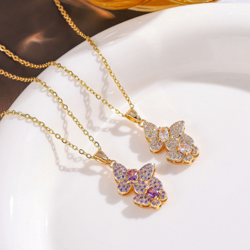 European and American Cross-Border New Fashion Jewelry Pendant Colorful High-End Full Diamond Double Butterfly Necklace Light Luxury Clavicle Chain Wholesale