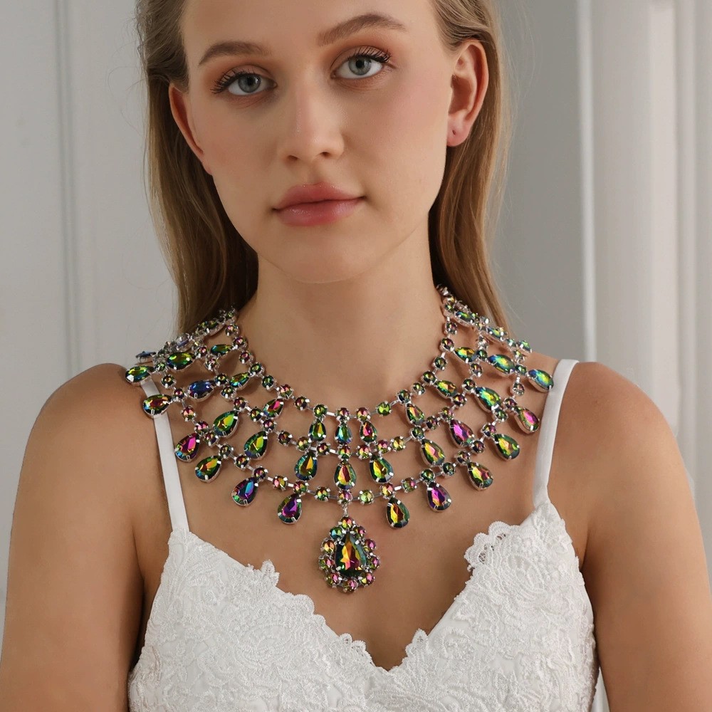 European and American Popular Colorful Necklaces, Exaggerated Design Rhinestone Necklaces, High-End Necklaces