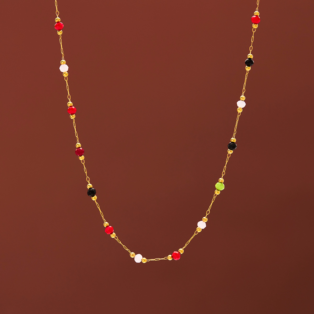Color Natural Stone Necklace Niche Design Retro All-match Maillard Beaded Beanstalk Titanium Steel