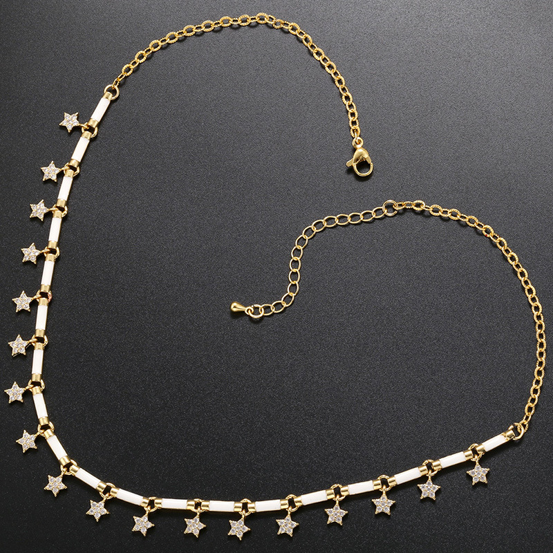 Color drip necklace ins Wind Micro-inlaid zircon star rectangular pendant necklace cross-border jewelry VL254