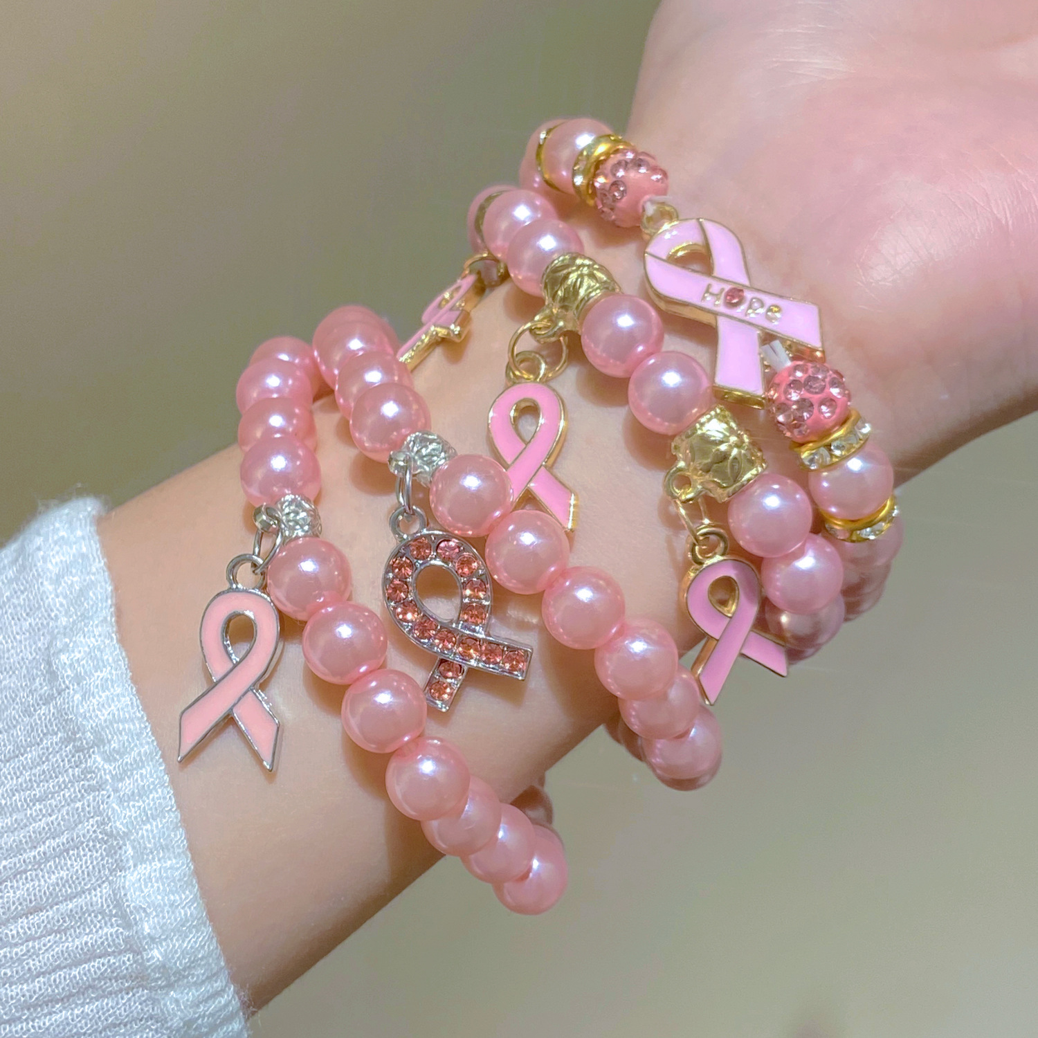 Bracelet Cancer Bracelet Holiday Gift Breast Logo Pink Ribbon Pendant Rhodochrosite Bracelet