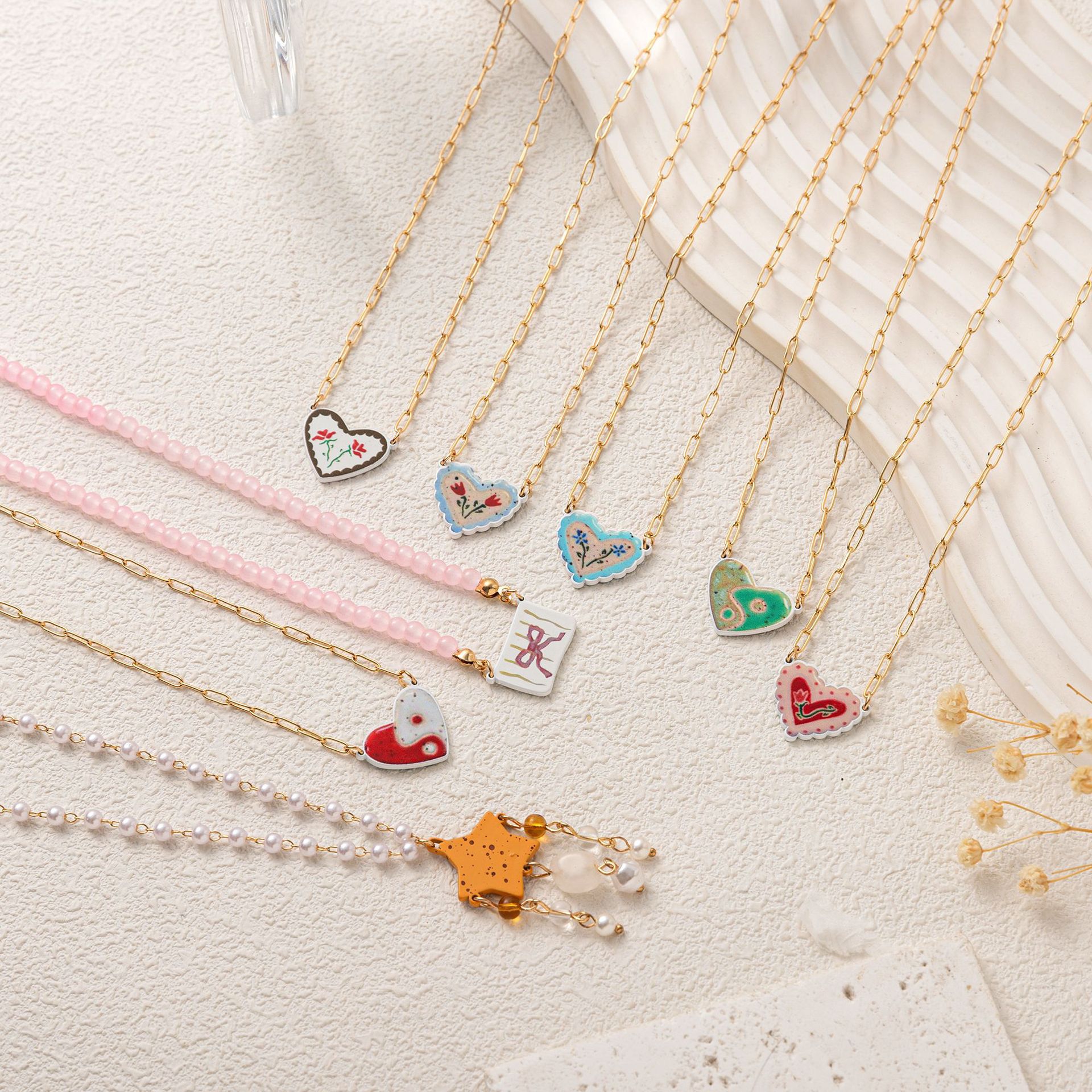 European and American Cross-Border Hot Selling Ceramic Heart Star Necklace Small Flower Tai Chi Colorful Printed Pendant 14K Fresh and Sweet