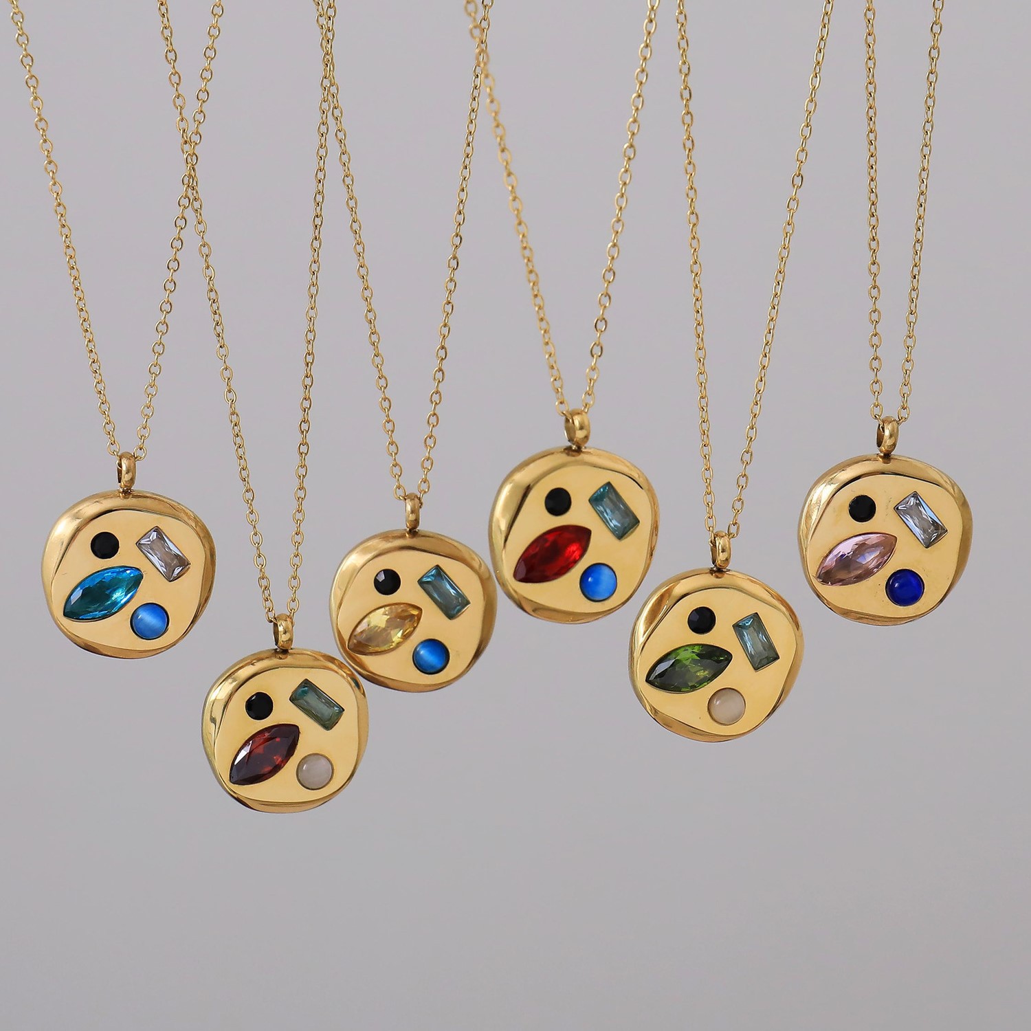 Cross-border hot sale zircon round necklace women's all-match high-grade jewelry niche design colorful crystal stone jewelry