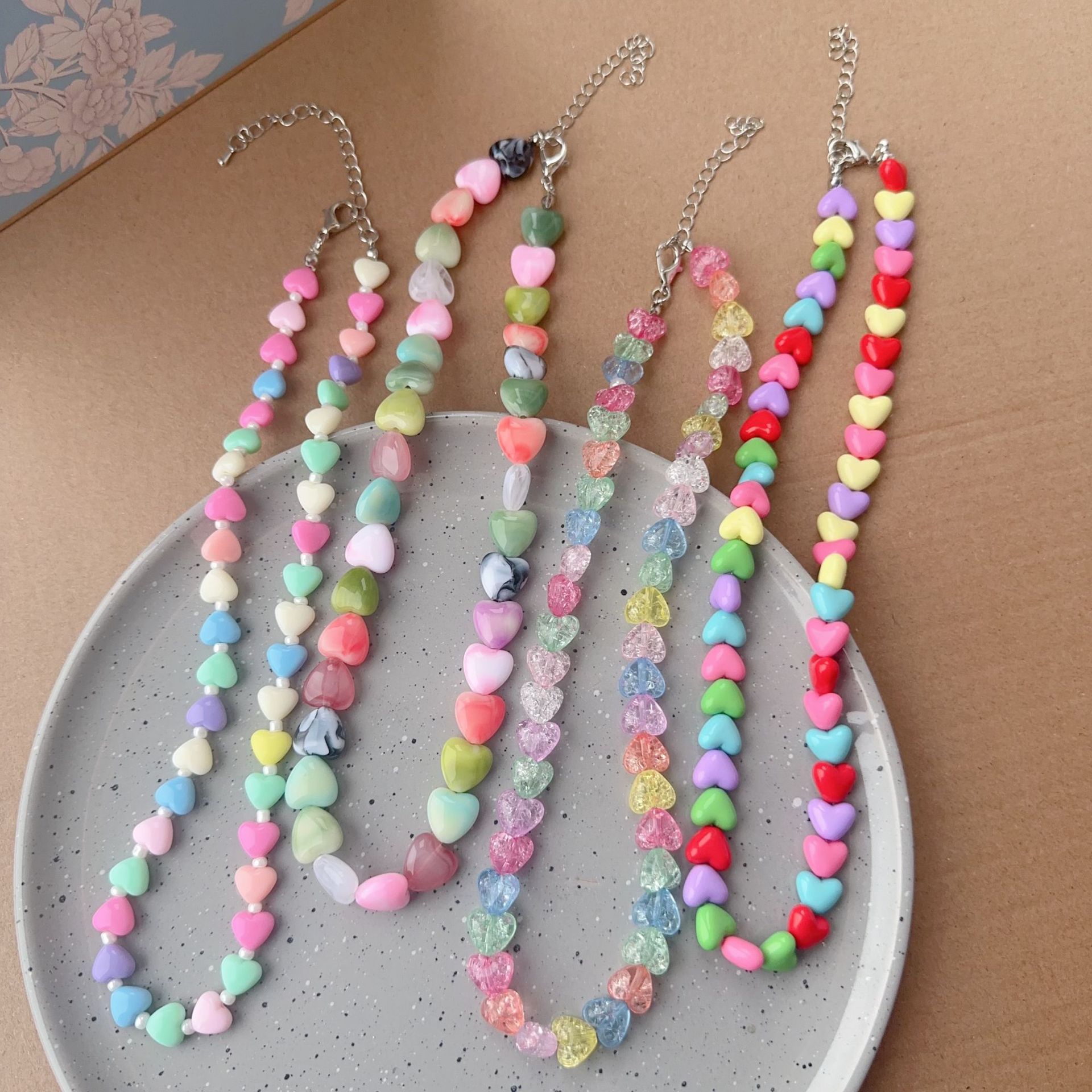 Color Candy Beaded Love Necklace Ins Niche Design Sense Accessories Sweet Necklace High Sense Necklace Accessories