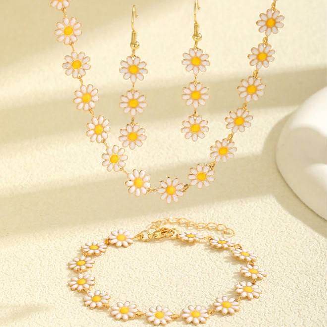 Ins Pastoral Style Necklace Small Daisy Flower Pendant Bracelet Anklet Retro Niche Colorful Necklace Jewelry for Women