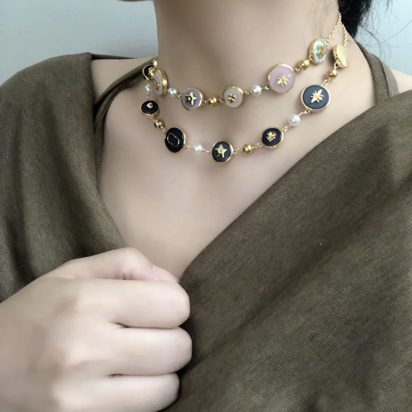 Fashion French retro color stone stitching letter necklace niche design high sense new clavicle chain bracelet