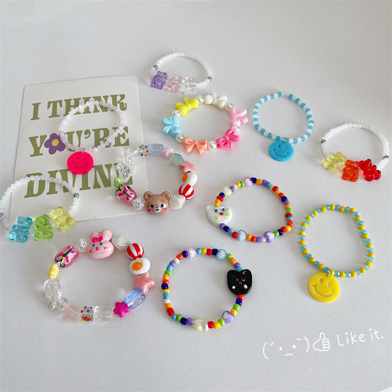 Homemade Cute Cartoon Children's Fun Panda Mi Beaded Bracelet ins Niche Design New Girlfriend Pearl Bracelet