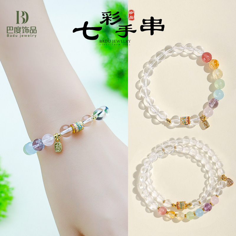 White Crystal Color Five Scriptures Beaded Bracelet Women's Fresh and Sweet Amethyst Colorful Bracelet Jewelry