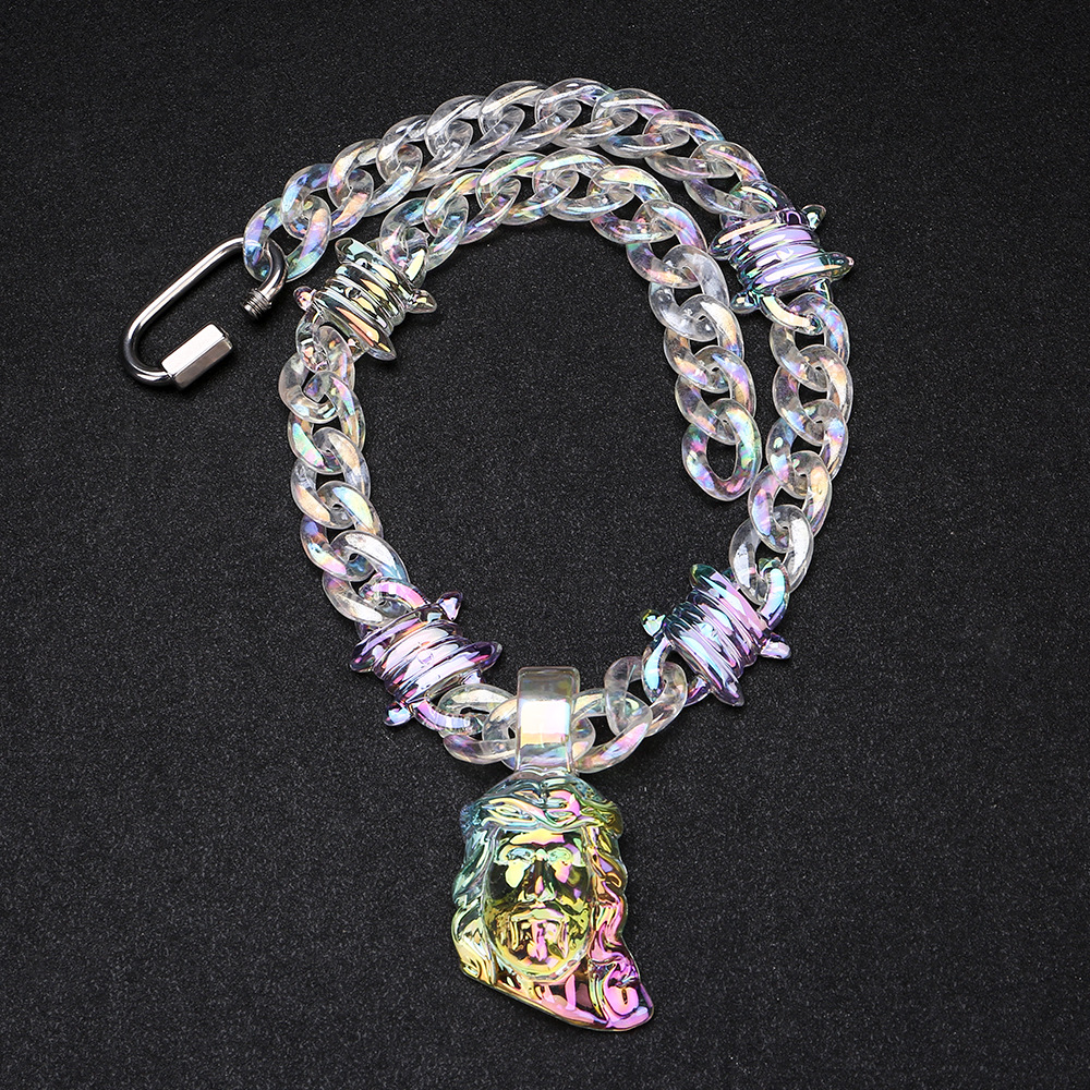 European and American Hip-Hop Water Drop Transparent Color Resin Acrylic Pendant Cross Necklace Cross-Border Wholesale