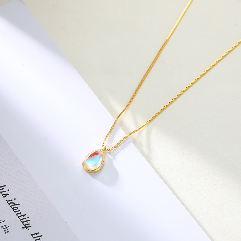 Moonstone Water Drop Necklace Women's Colorful Gradient Clavicle Chain New Exquisite Box Chain Necklace Accessories High-End