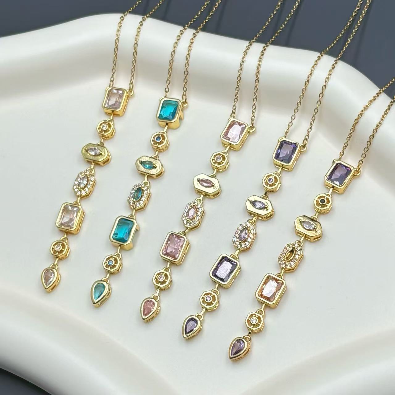 Amazon Fashion Rectangular Color Pendant Multicolor with Shining Bracelet Round Zircon Necklace Jewelry Wholesale