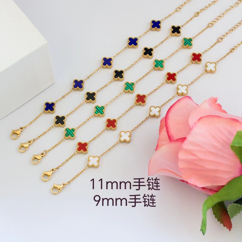 Factory wholesale internet celebrity same fashion titanium steel non-fading size 9MM Five-Flower lucky four-leaf clover bracelet