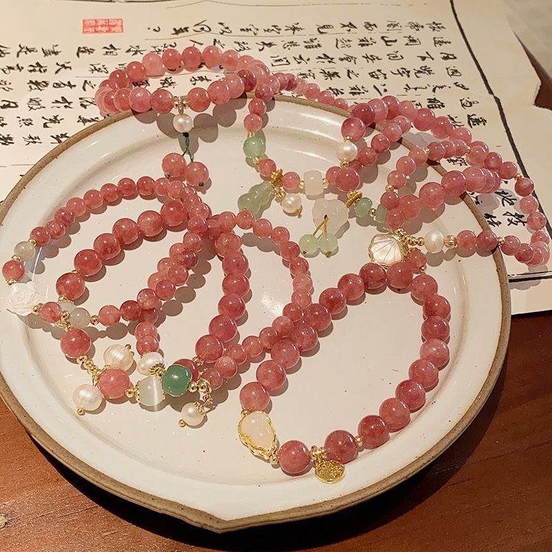 Soft Girl Strawberry Pink Crystal Bracelet Women's 2024 New Entry Luxury Niche Bracelet Beads Gourd Jewelry