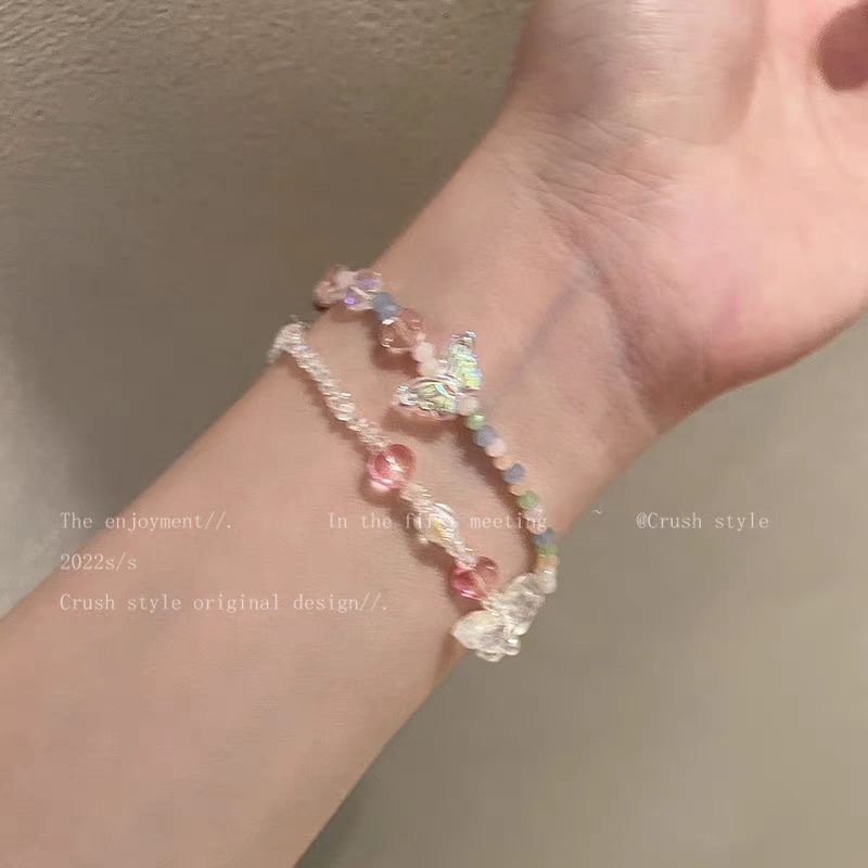 Butterfly color beaded bracelet candy color ins niche design female student girlfriends two hand jewelry washable