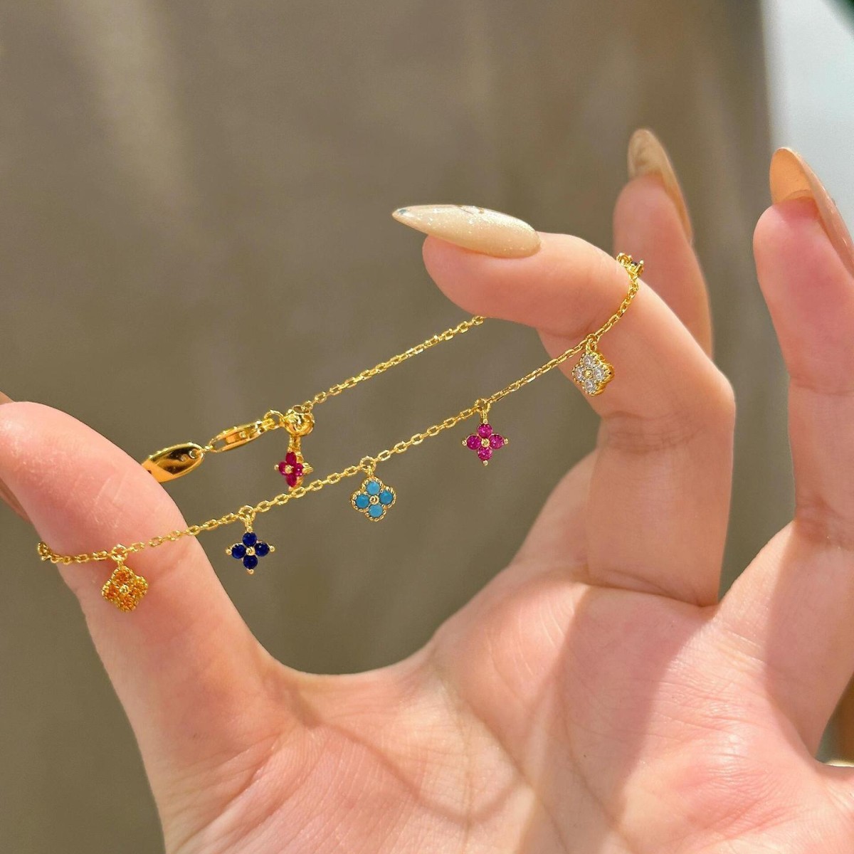 2025 New Colorful Zircon Four-leaf Flower Bracelet Women's Light Luxury Niche Exquisite Gift for Girlfriend