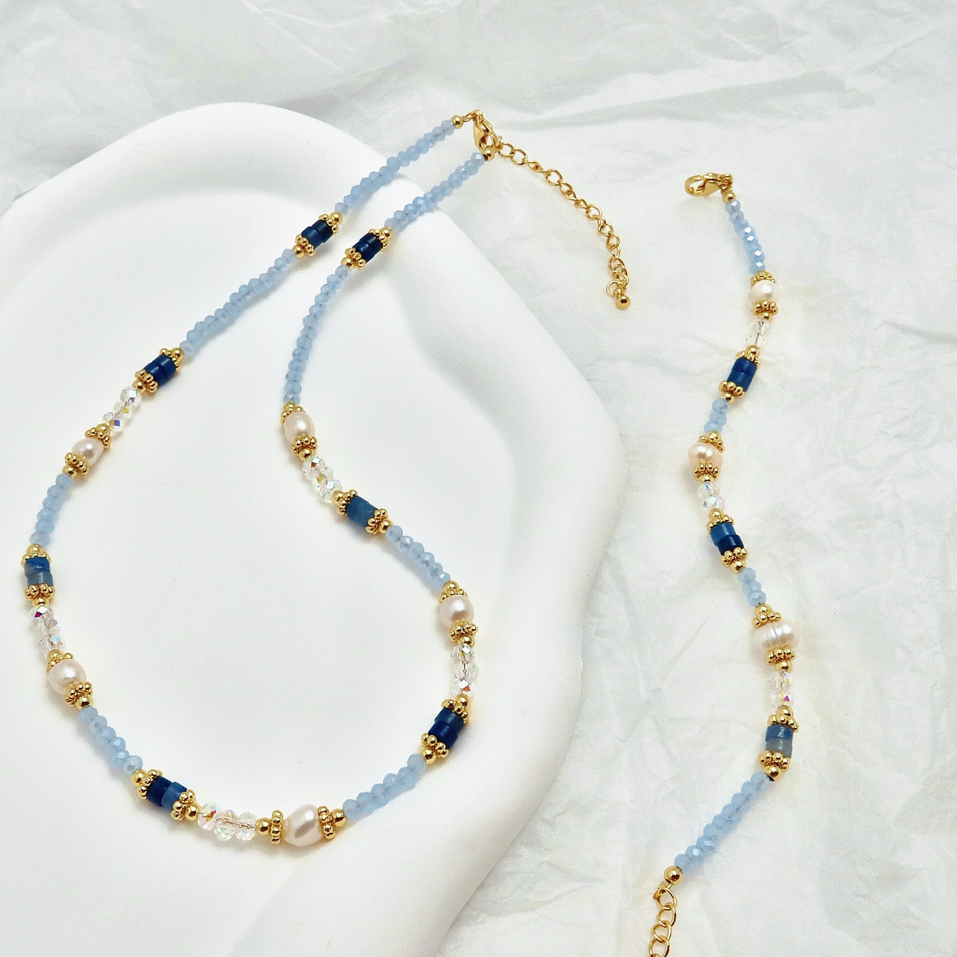 Handmade Colorful Natural Stone Aquamarine Freshwater Pearl Beaded Bracelet Necklace Autumn and Winter Dopamine Fresh Style for Women