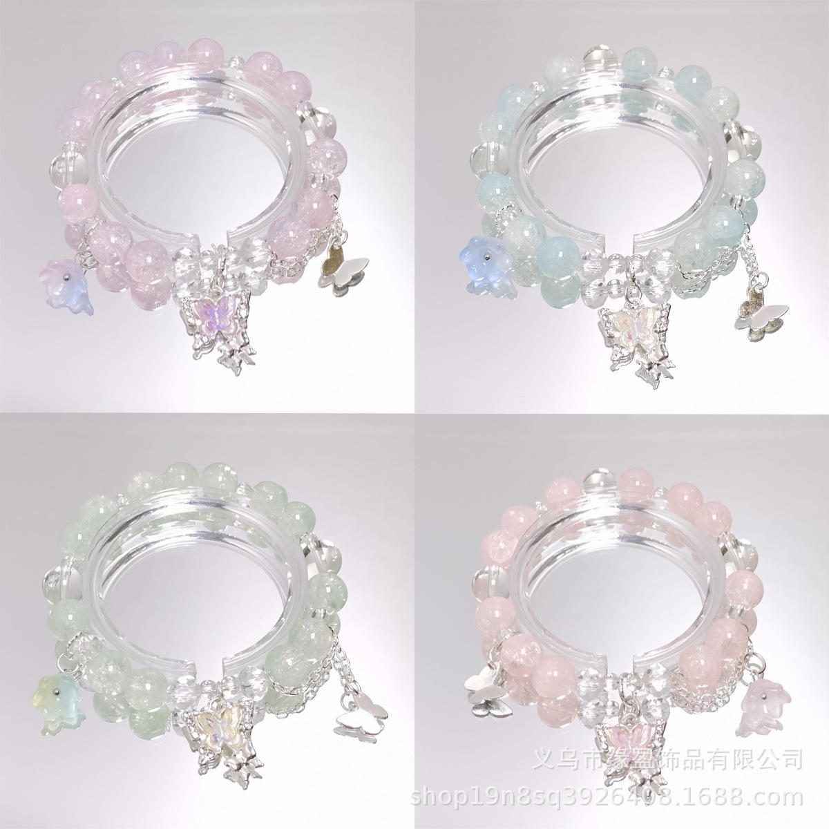 Original Ice Gradient Color Beaded Crystal Butterfly Bracelet Women's Light Luxury Impression Niche High-Looking Student Bracelet