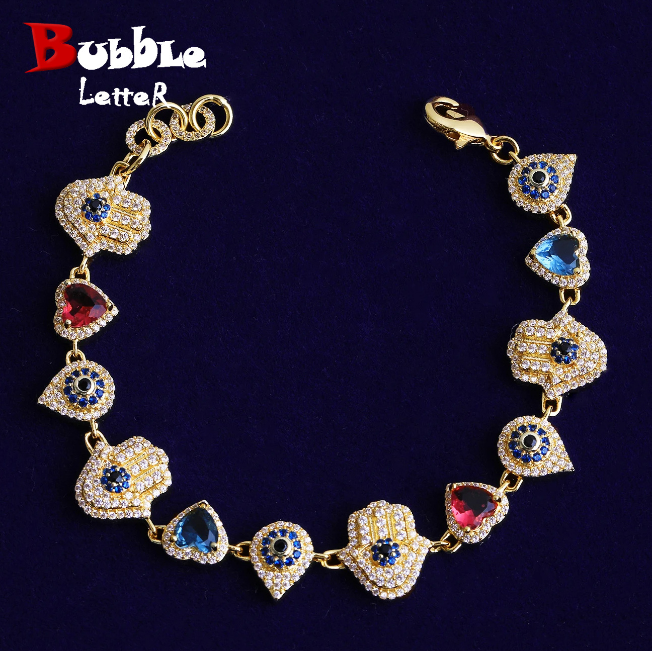 European and American Cross-Border Colorful Palm Eye Bracelet Copper Inlaid Zircon Hip-Hop Personality Fashion Men's and Women's Hip-Hop Bracelet