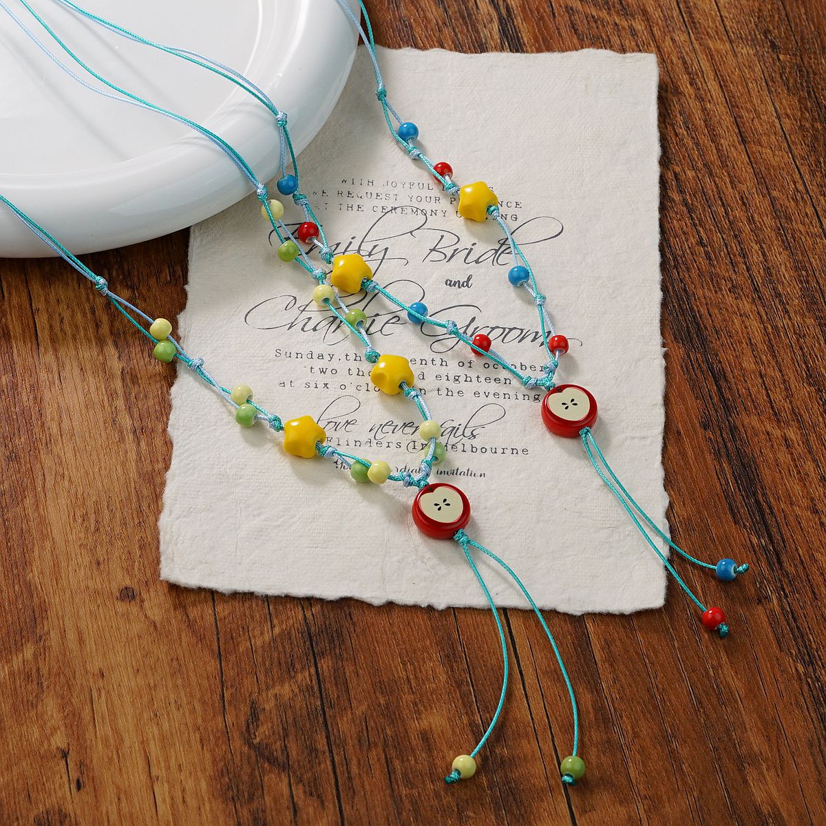 Jingdezhen Summer Dopamine Color Necklace Long Lanyard Accessories New Apple Braided Rope Necklace Star Pendant