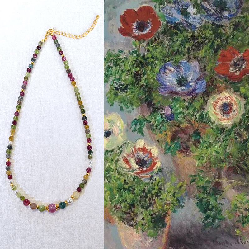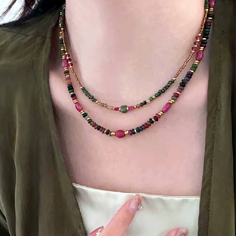 National Trendy New Chinese Niche Simple Retro Dopamine Colorful Tourmaline Beaded Sweet Elegant Necklace Women's Clavicle Chain