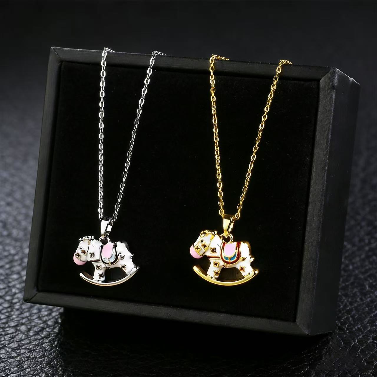 Get Rich Immediately Zodiac Oil Dripping Carousel Titanium Steel Necklace Women's Fashion Colorful Dopamine Donut Clavicle Chain