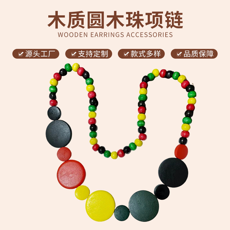 European and American Hot-Selling Handmade Colorfulful Large Disc Super Exaggerated Wooden Beads African Long Necklace Necklace Women