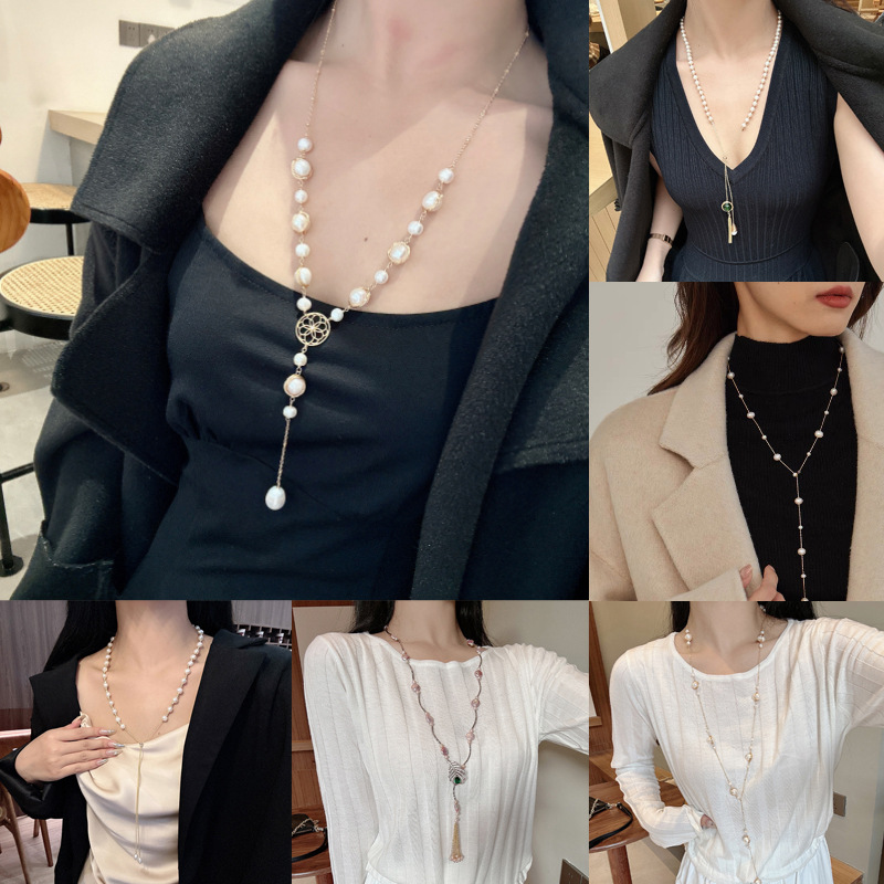 Freshwater Pearl Winter Long Woolen Chain Retro High-end Necklace Jewelry Women's All-Star Necklace Accessories Jewelry