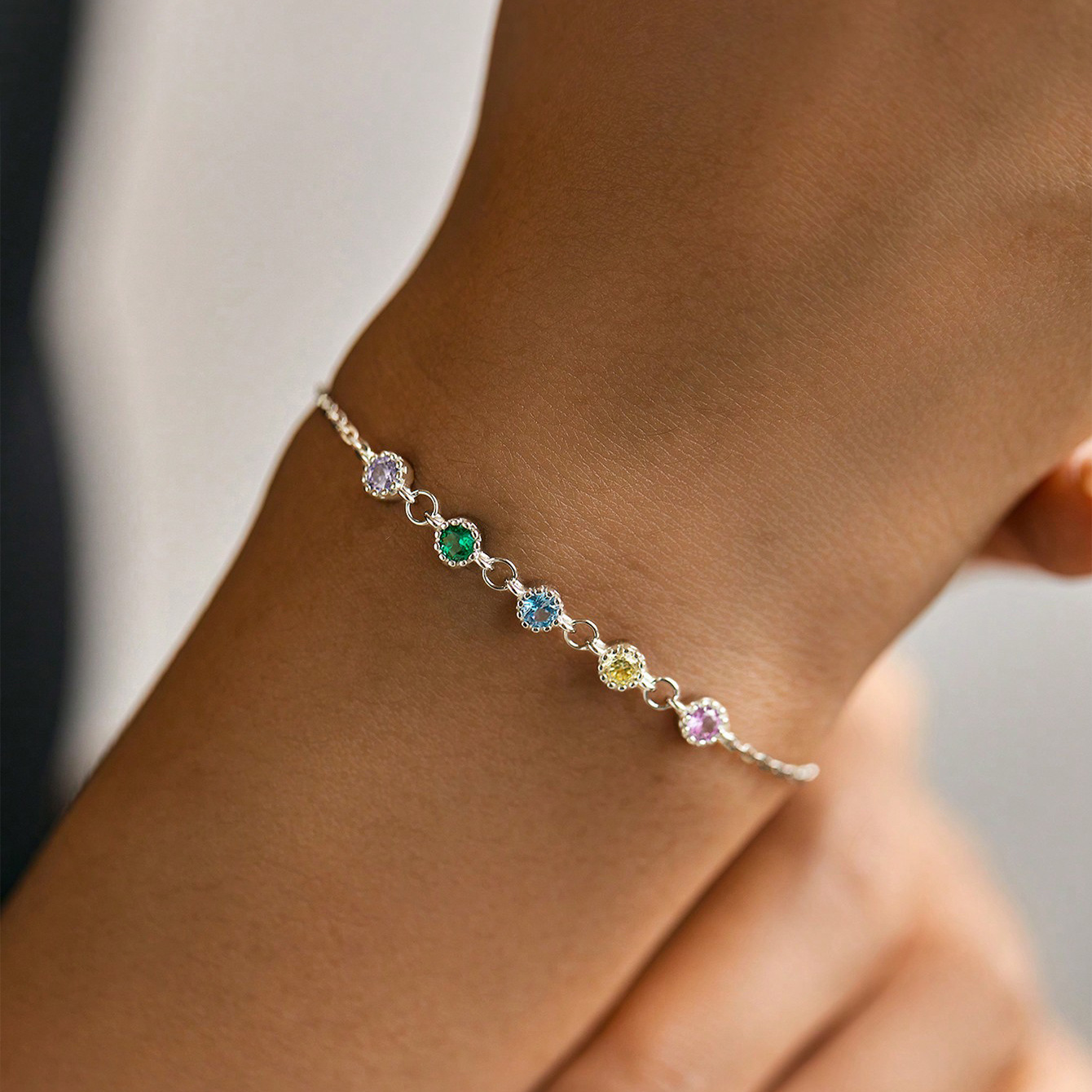 1 Piece of 925 Silver Trendy and Fashionable Random Colorfulful Zircon Chain Bracelet Valentine's Day Anniversary Gift Simple Design