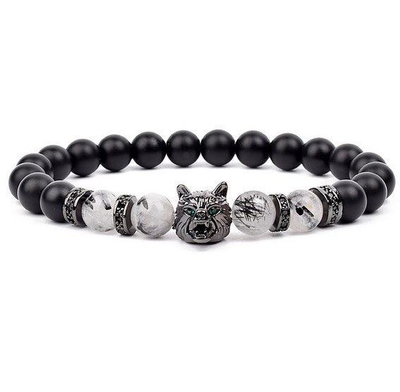 8mm colorful Tiger Eye Stone micro-inlaid spacer gun black green eye wolf head yoga bracelet DIY Buddha beads bracelet f453