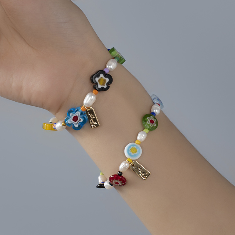 Zhao Rusi's Colorful Coloured Glaze Floret Natural Freshwater Pearl Beaded Bracelet ins Niche Design Personalized Women