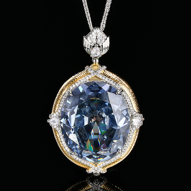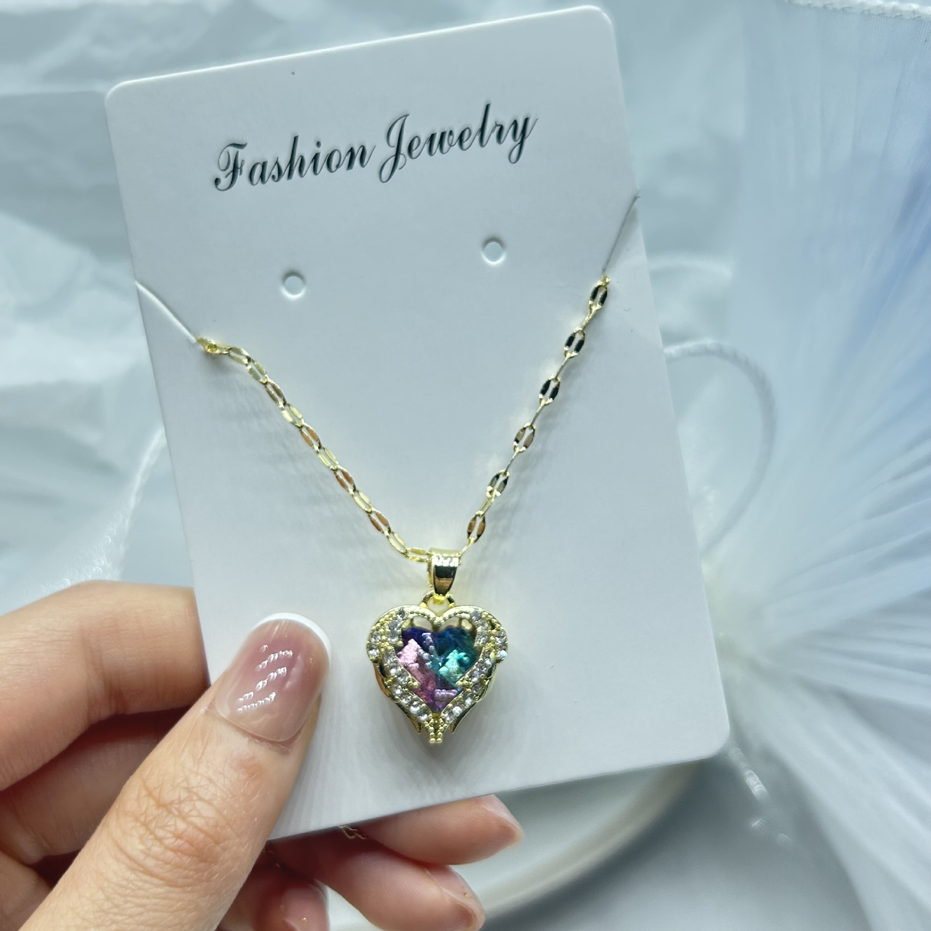 European and American Cross-Border Ocean Heart Dazzling Purple Light Heart-Shaped Colorful Water Gold Pendant Necklace for Women, High-End Clavicle Chain Accessory