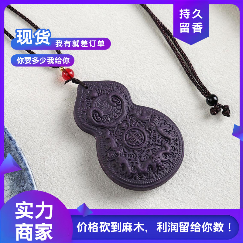 Factory Wholesale Handmade Five Blessings Gourd Pendant Necklace for Men and Women, Popular Chinese Herbal Incense Nine Purple Oriental Necklace Pendant