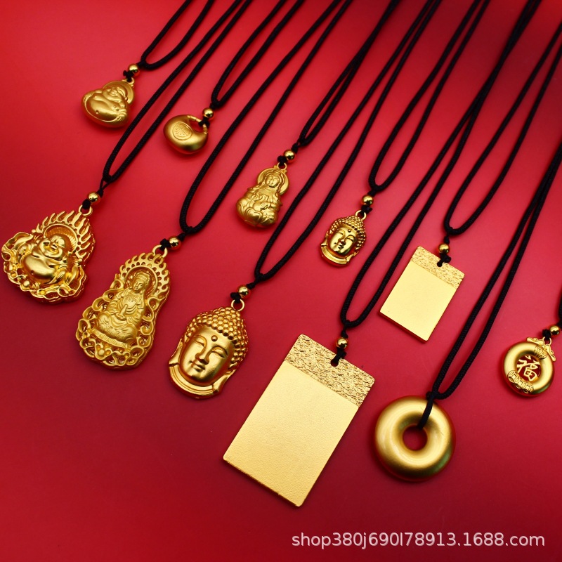 Ancient Legacy Solid Buddha's Head Necklace Vietnam Sha Jin Long-term Color-free Sutra Turn Dragon Pendant Imitation 24K Gold
