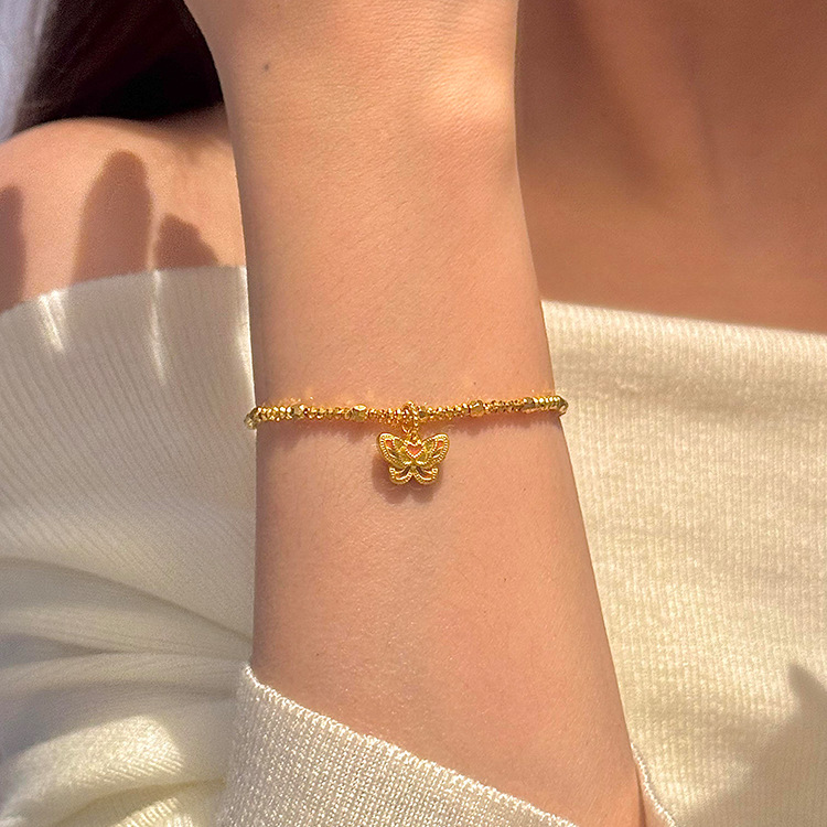 Small Sweet Potato New Chinese Style Broken Silver Pink Drop Glaze Butterfly Bracelet Women's Retro Sweet Spring and Summer High Color Value Bracelet